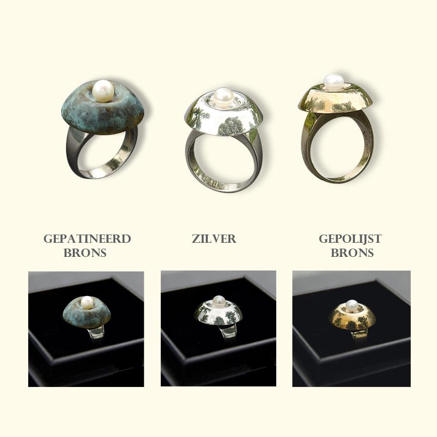 Het element op de ring, de As-Cabochon, is van brons, zilver of gepatineerd brons, afgewerkt met een parel. Geleverd in een exclusief, handgemaakt kistje. | parlAmore©