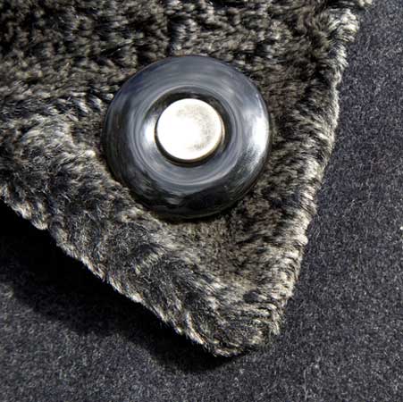 Onyx Rouwknoop als reversspeld op een winterjas | parlAmore©